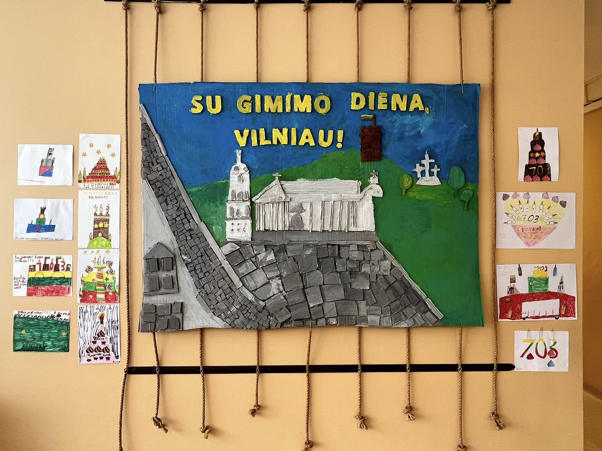 Antrokai jau šiandien skyrė savo laiką ir žinias artėjančiam Vilniaus gimtadieniui paminėti. Jie pagamino didžiulę freską bei dalyvavo integruotose dorinio ugdymo ir dailės pamokose tema „Vilnius – miestas, kuris mus vienija: istorija, vertybės ir žmonės“. Pamokų metu vaikai analizavo vaizdo įrašus, susipažino su Vilniaus šventaisiais, kūrybiškai dirbo ant sniego padėklų. Šios veiklos padėjo ne tik praplėsti žinias apie sostinės istoriją, bet ir stiprinti bendrystės, pagarbos bei meilės savo miestui jausmą.