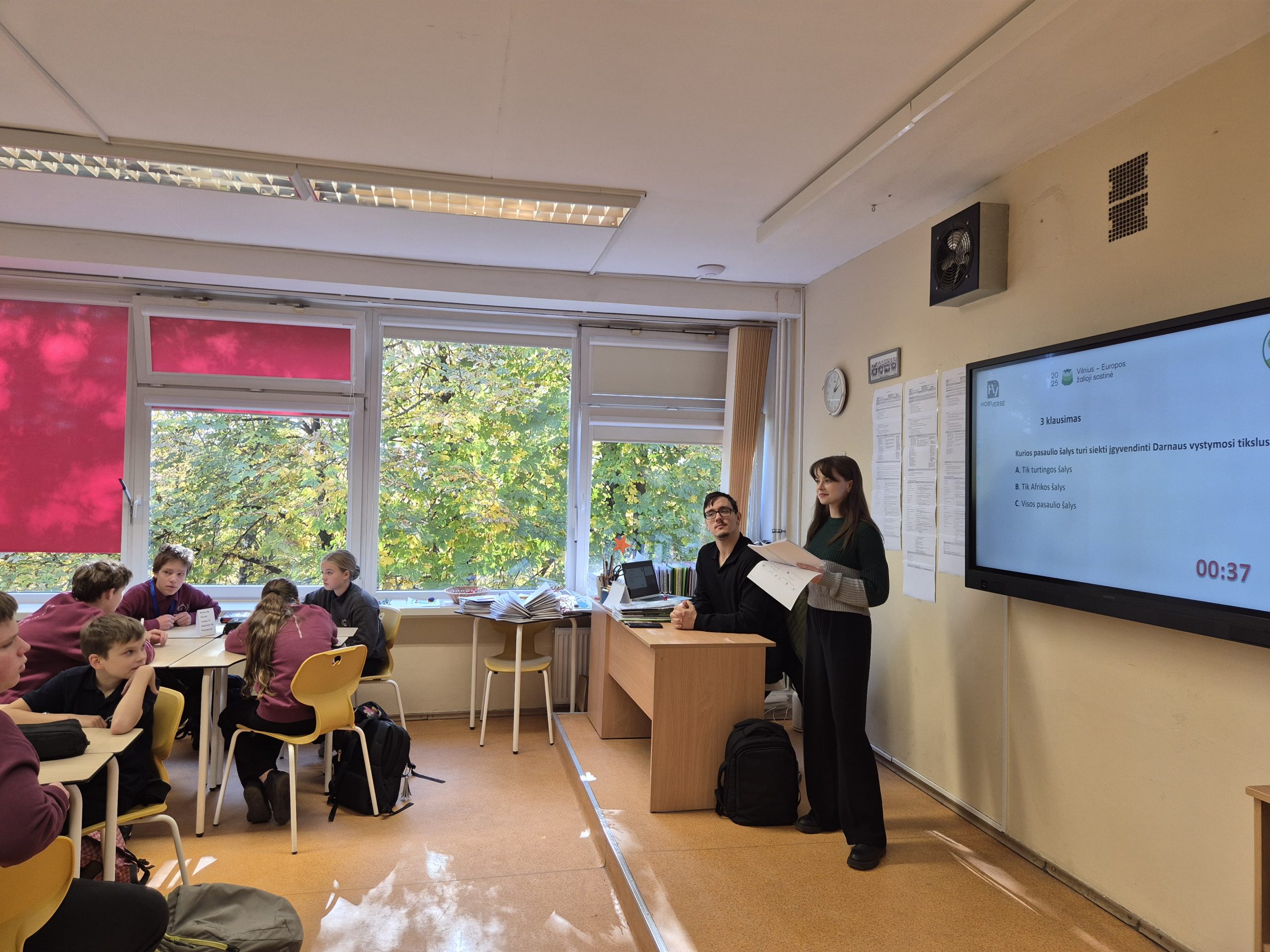 „Ar Jums rūpi gamta, klimatas ir Vilniaus ateitis? Parodykite tai!“ – taip skamba šiemet startavusios Aplinkosaugos žinių olimpiados šūkis. Spalio 20 d. 5 mišrios mūsų mokyklos moksleivių komandos (6-8 klasių) dalyvavo mokyklos Aplinkosaugos žinių olimpiadoje. Mokiniai komandomis atliko įvairias užduotis apie klimato kaitą, bioįvairovę, atliekų tvarkymą, tvarius miestus. Mokyklos etapo laimėtojai – Lėja 8b, Aistė 6d, Augustas 8b, Emilija 6d, Ieva 7d – lapkričio 12-13 dienomis vyks į miesto etapą HOBYVERSE. Olimpiadą kuravo biologijos mokytoja Jurgita.