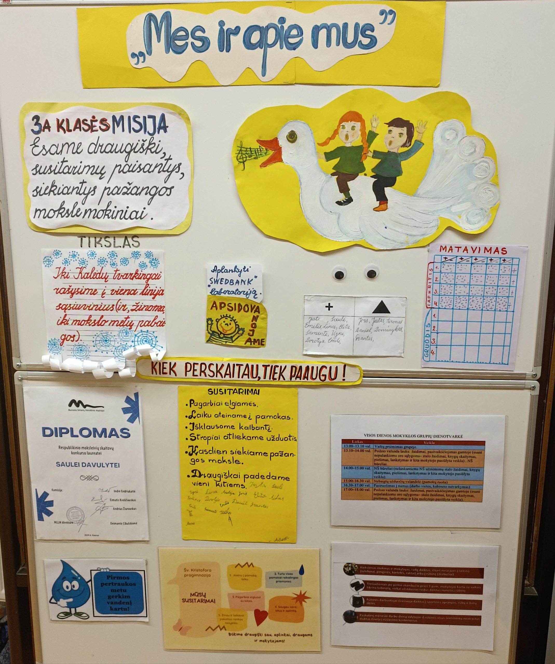 Šių mokslo metų pradžioje mokytojų metodinių grupių komandos, klasės ir kiekvienas mokinys asmeniškai išsikėlė tikslus. Klasės pasipuošė duomenų centrais „Mes ir apie mus“, kuriuose stebime klasės padarytą pažangą. Mokiniai fiksuoja duomenis savo asmeniniuose aplankuose (stebi vidurkius, įsitraukimą į pamokas ir kitą svarbią informaciją).