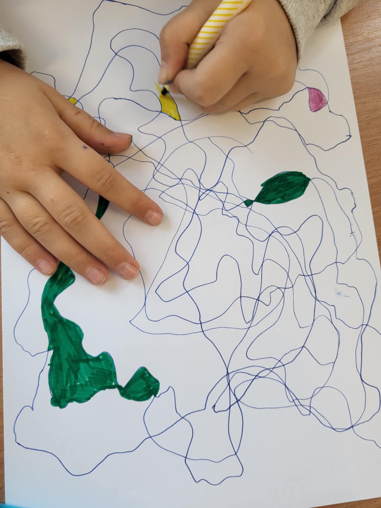 Kiek daug galima atrasti atliekant, rodos, paprastą judesį. Stiklo rutuliuko riedėjimas ne tik džiugina vaikus, bet ir lavina jų kognityvinę raidą: mokiniai stebi judėjimą, numato trajektoriją, supranta priežasties–pasekmės ryšius. Spalvindami atsiradusias formas jie mokosi atpažinti ribas ir skirstyti plotus. Ši veikla stiprina smulkiąją motoriką ir rankų–akių koordinaciją, skatina kūrybiškumą ir saviraišką – juk čia nėra teisingo ar neteisingo rezultato. Rutuliuko stebėjimas ir spalvinimas ramina, padeda susikaupti, o pokalbiai apie tai, ką vaikai mato ir jaučia, praturtina kalbinę bei socialinę raidą.