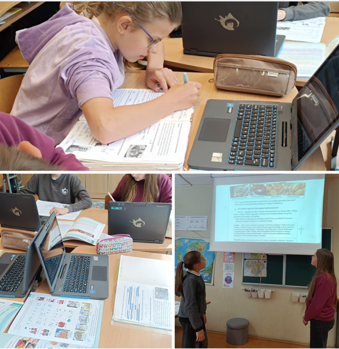 Žinoma, sunku būtų įsivaizduoti vizito į mokyklą nestebint jokios pamokos. Apsilankėme keliose klasėse, kur stebėjome, kaip integruojamos veiklos, temos. Kolegos noriai dalijosi savo patirtimi ir įžvalgomis.